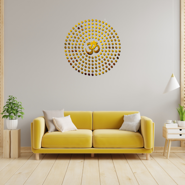 Om With 100 Dots Golden Mirror Stickers For Wall